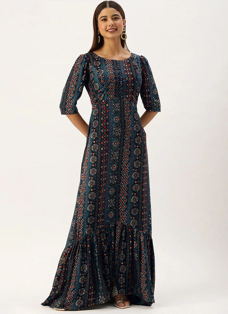 Refer the fabric image for true color of the dress. This dress is custom designed from fabric and custom stitched. Once sold cannot be returned.