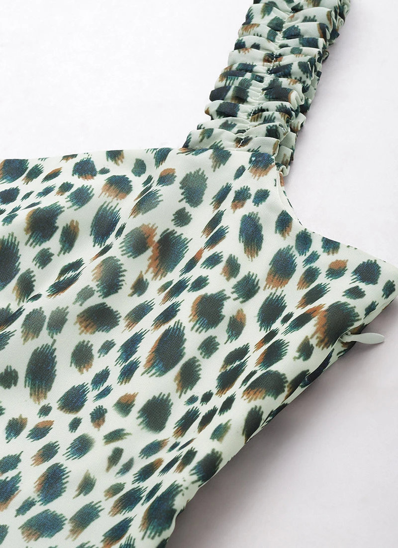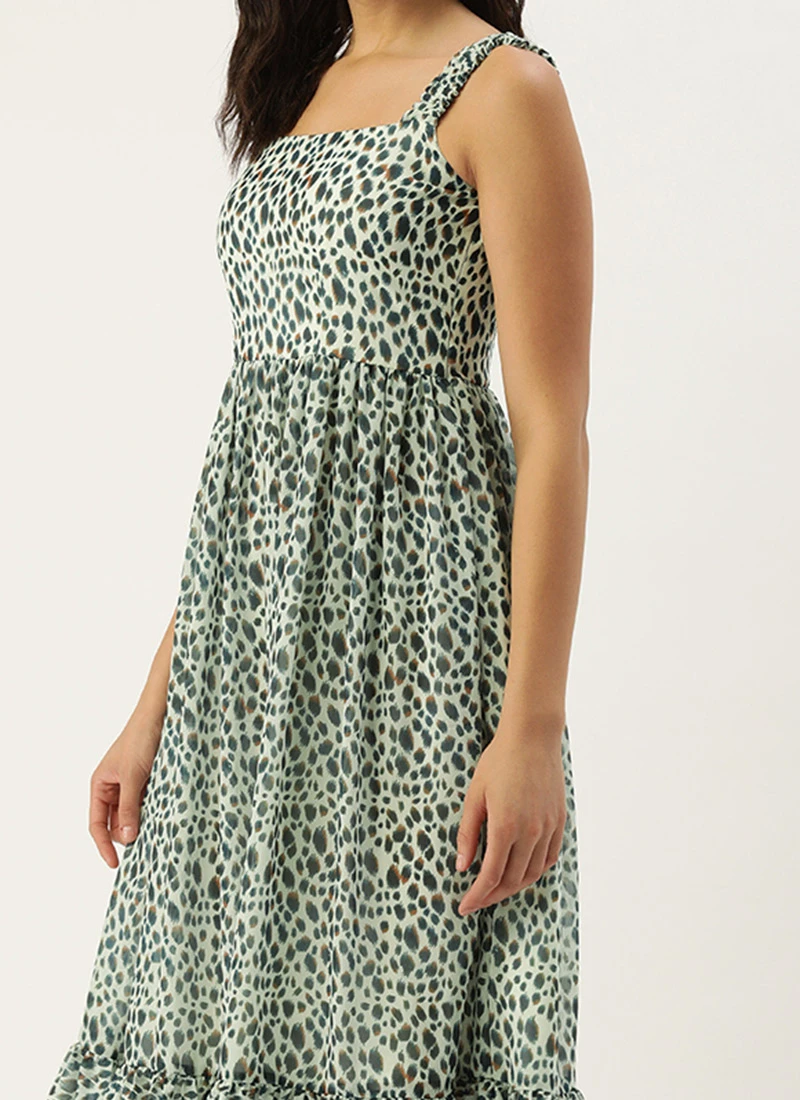 Cream Digital Printed Georgette Flared Dress Party Wear