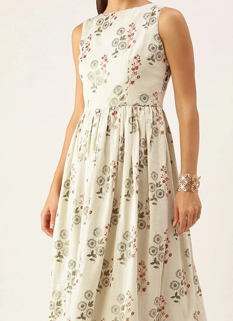 Cream Silk Cotton Ankle Length Dress After Six Wear
