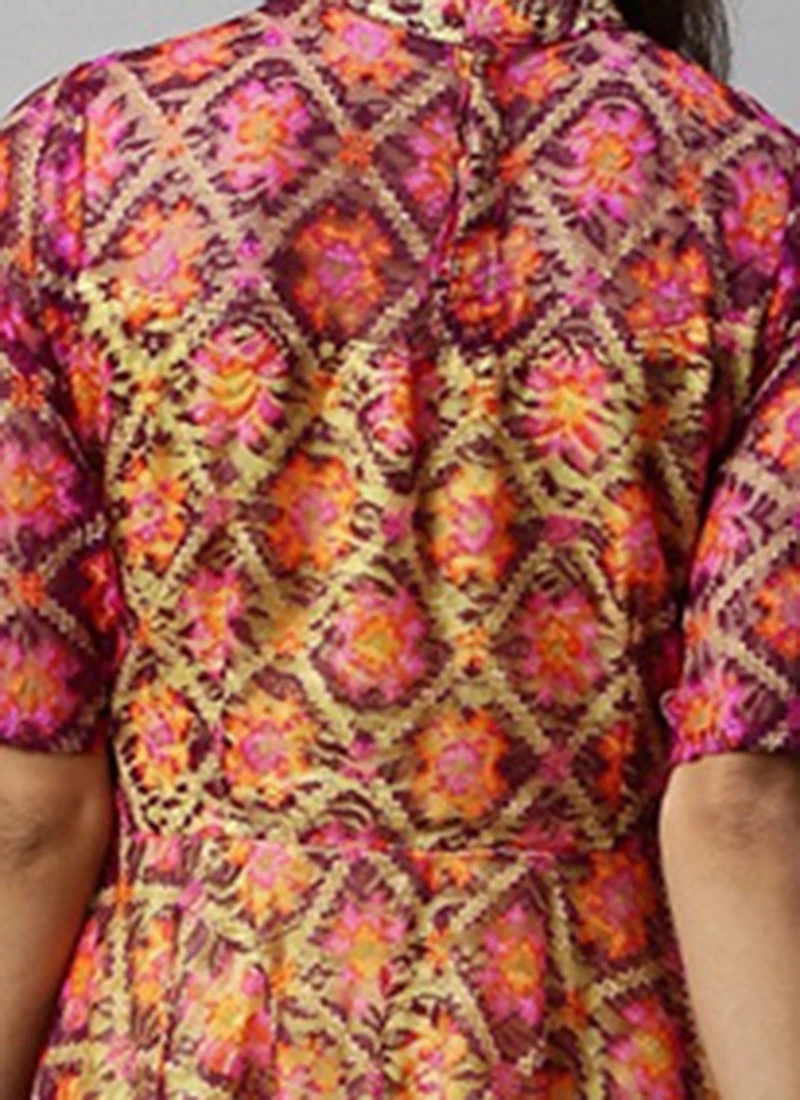 Knee Length Multiclolored Fit N Flared Dress Party Wear