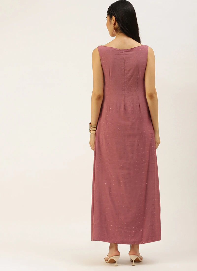 Maroon Sequins Embroidered Dress After Six Wear