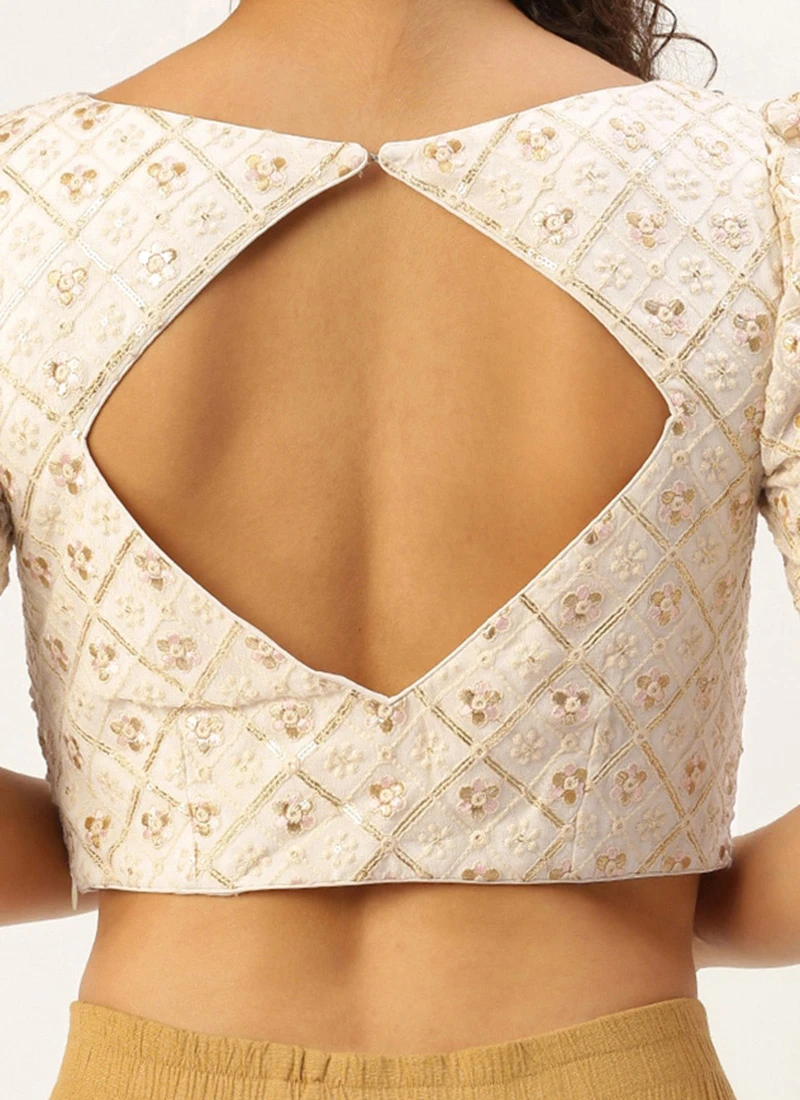 Off White Sequins Embroidery Blouse Festive Wear