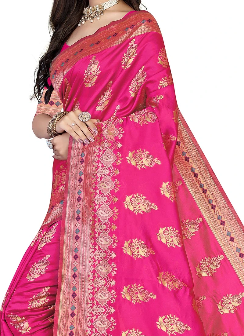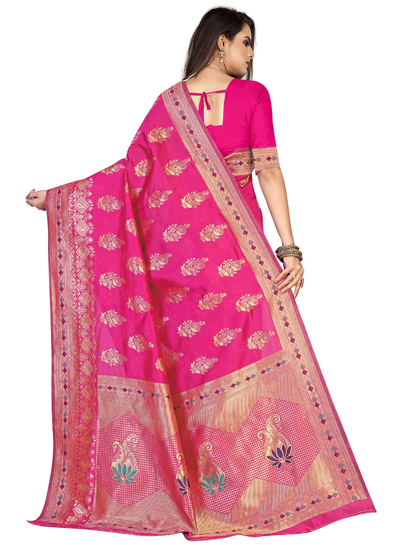 Pink Banarasi Silk Weaving Work Saree Festive Wear
