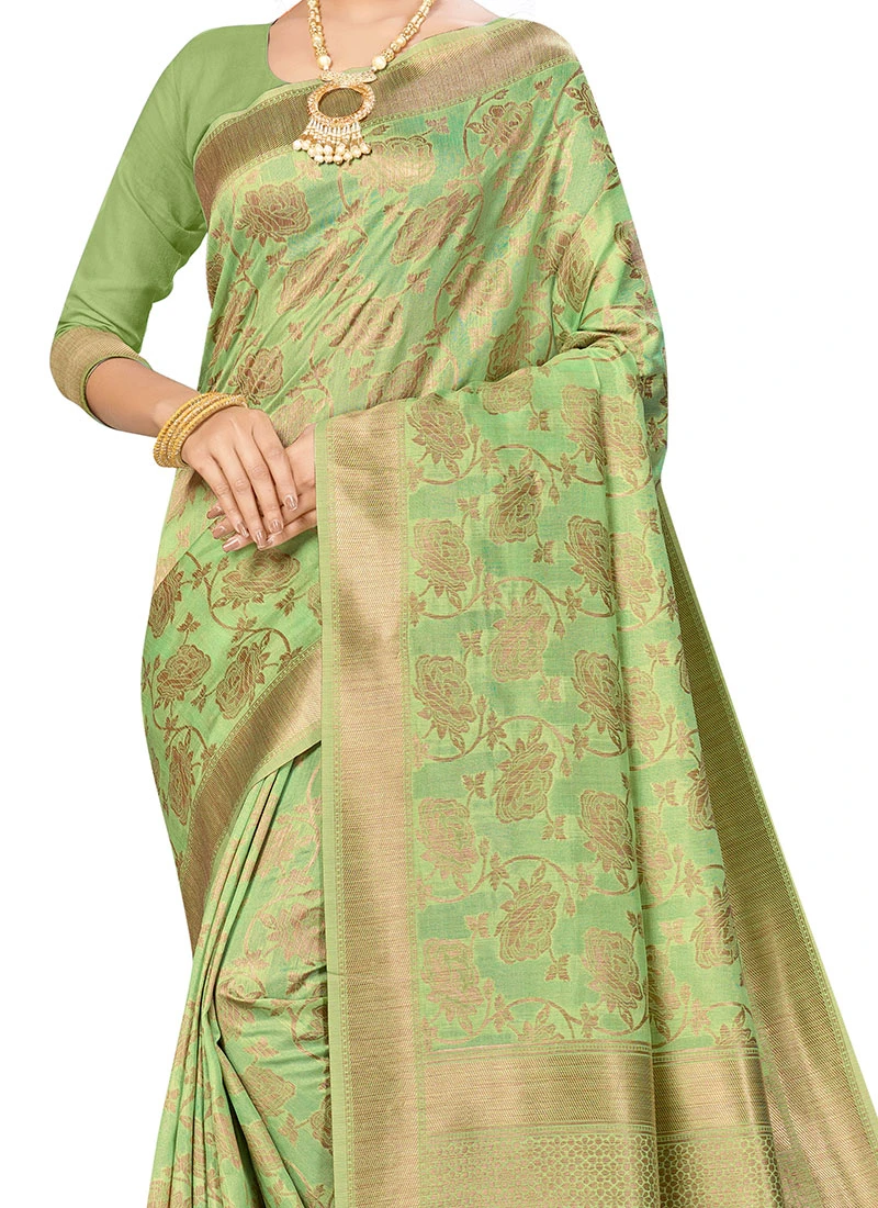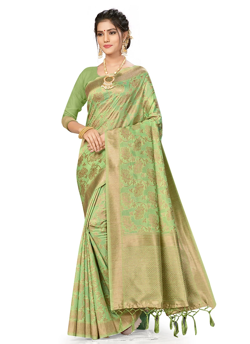 Pista Green Banarasi Silk Weaving Saree Festive Wear