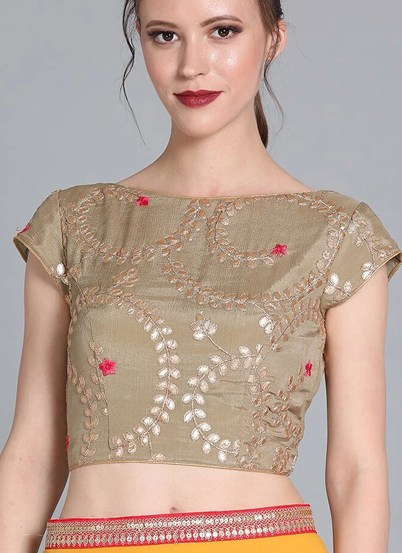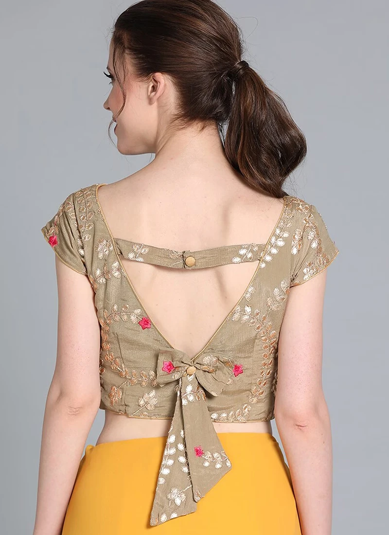 Sprout Green Embroidered Chinon Blouse Festive Wear Wedding Wear