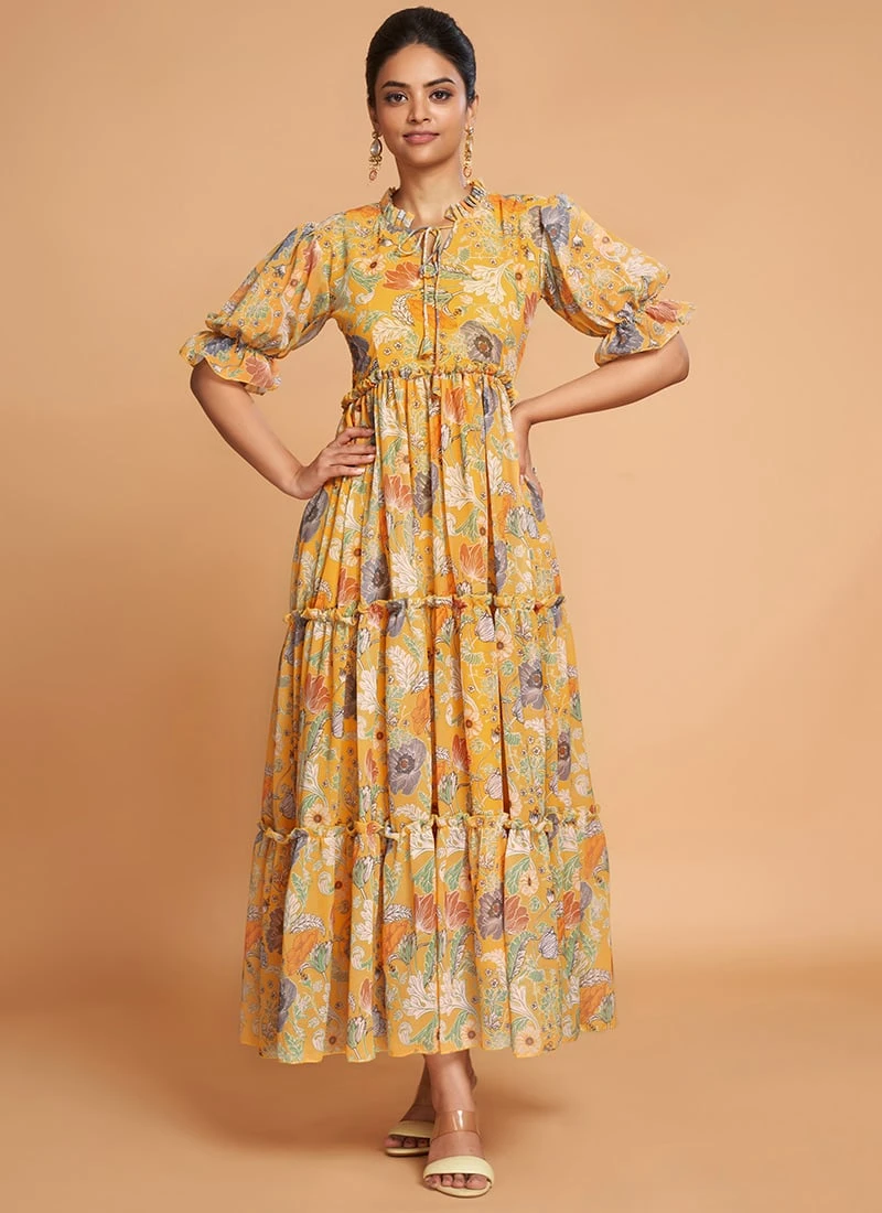 Green Printed Art Silk Cotton Maxi Dress After Six Wear Festive Wear